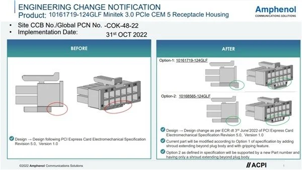 另据外媒报道,PCI-SIG组织正在考虑对12VHPWR 16针接口进行调整加固,但还在研究阶段,计划12月6日前完成审查。根据泄露的文件,PCI-SIG设计了两种新的加固方案,都是围绕单独的4针信号线路,插座和插头都会增加更多的保护和支撑,使之连接更加牢固。 也就是说仅仅是个加固措施,12针供电线路完全不变,也就是说如果存在电流过高等情况,烧毁的风险依然存在,而且即便接口规范做出升级,和现有的RTX 4090甚至是RTX 4080显卡也没有关系……,可能话外之音就是:且用且珍惜吧。
