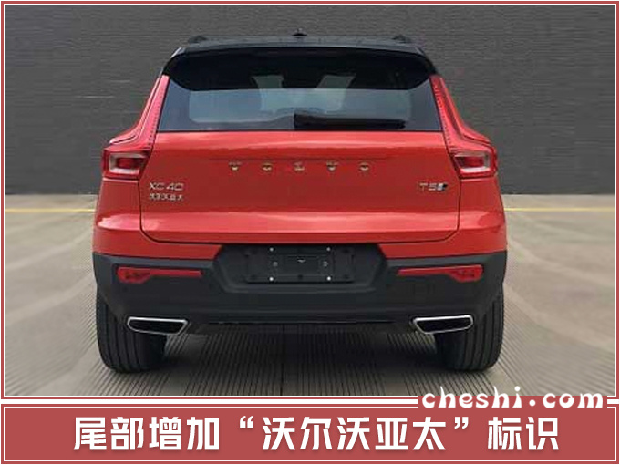 国产XC40外观延续了海外版车型设计,整体较为方正,前大灯组内融入了“雷神之锤”LED日间行车,前格栅提供直瀑式或点阵式两种布局。车身尾部加入了“沃尔沃亚太”标识,1.5T车型尾部标识为T3,2.0T低功率车型尾标为T4,2.0T高功率车型尾标为T5。国产XC40尺寸方面与进口版车型保持一致,长宽高分别为4425×1863×1652mm,轴距为2702mm。