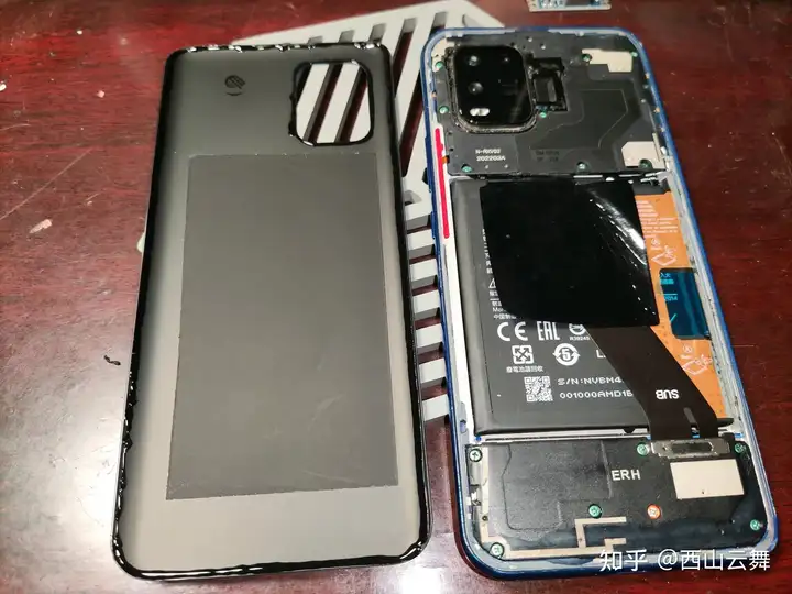 我在上面加了一层石墨烯散热贴,后盖四周以及摄像头挖孔周边打了胶水。