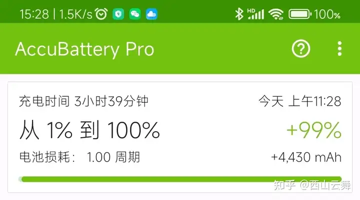 充进去的电量共4430mAh,与电池背后印刷的4420mAh几乎一样。
