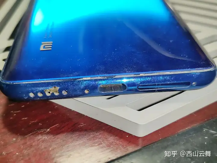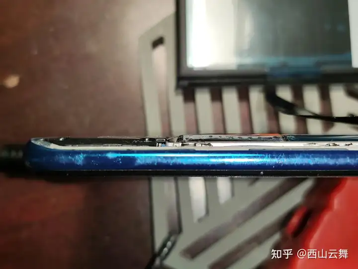 2.换后盖这台手机的后盖在前主人手里就换过,手艺不行,胶打的太多了,导致后盖给撬爆了。
