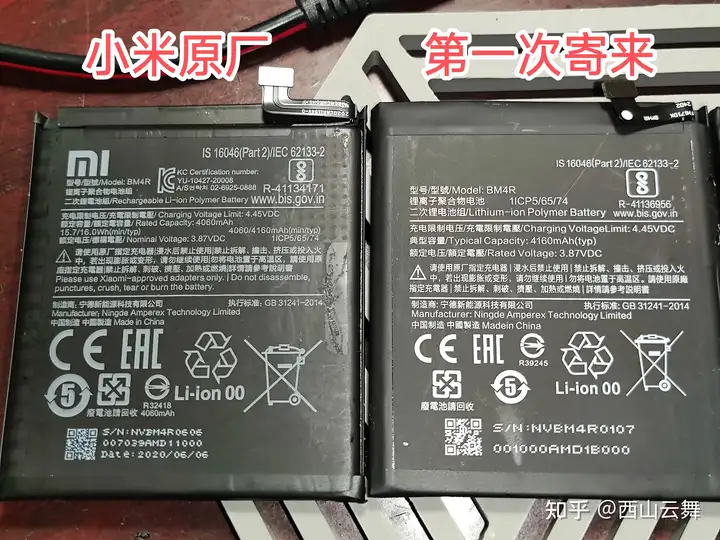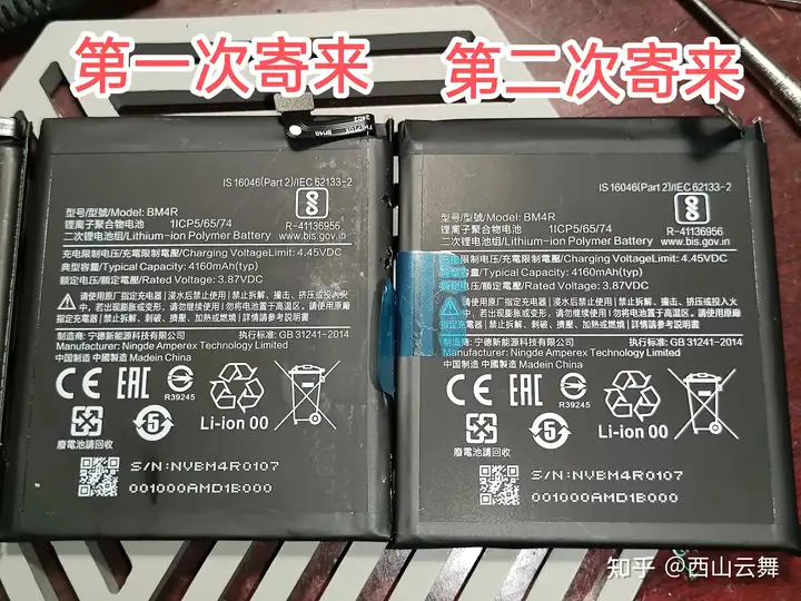 收到第2块电池后,把原厂电池和前后收到的两块电池摆在一起,发现三个都不一样。