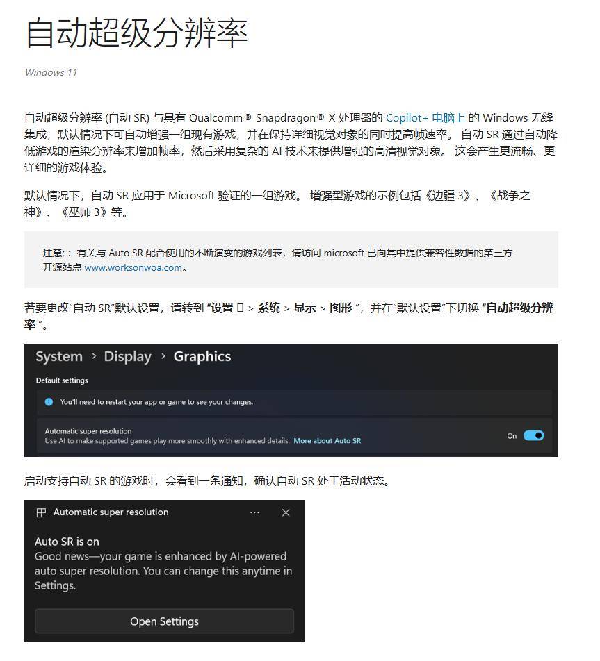 [评论] 微软 Win11 Auto SR 功能非高通独占,但目前仅骁龙 X 平台适配