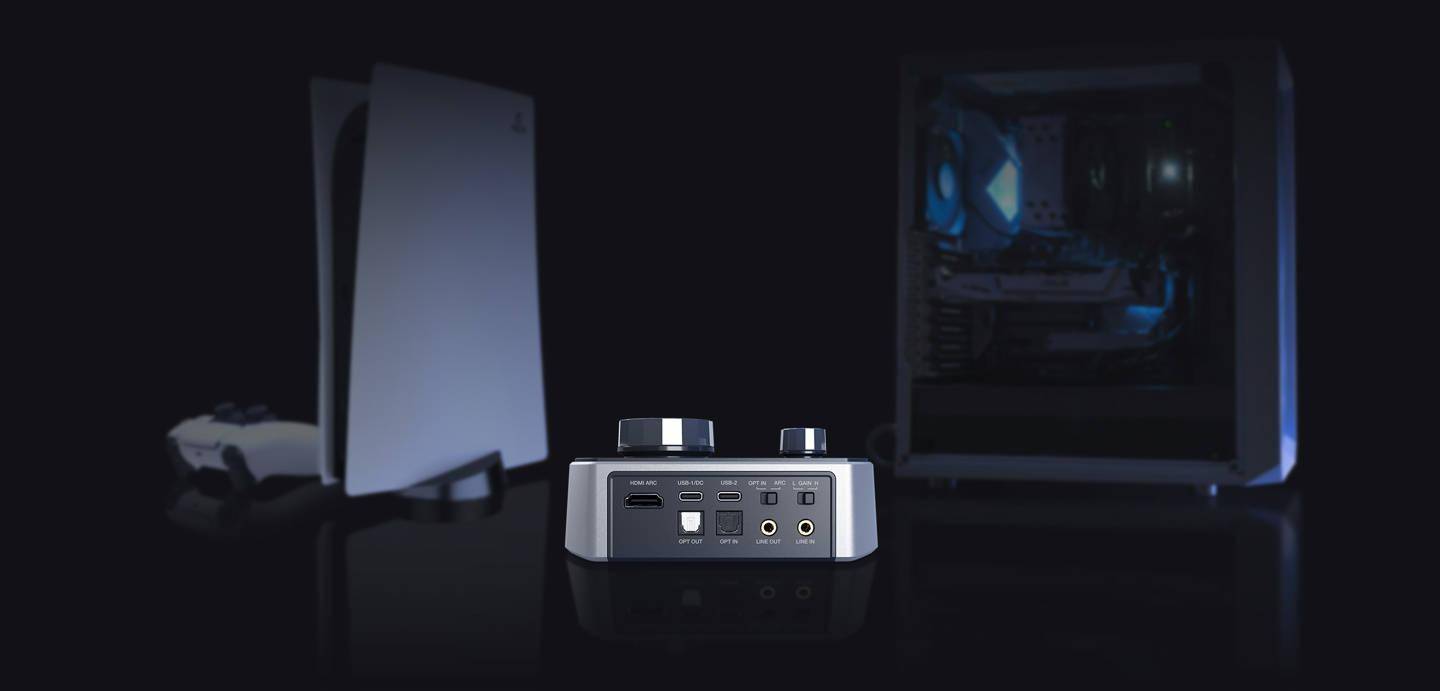 Creative 创新科技新加坡当地时间本月 16 日宣布推出 Sound Blaster G8 外置(桌面)游戏 DAC,该产品在 Creative 香港地区官网标价 1188 港币(IT之家备注:当前约 1087 元人民币)。 Sound Blaster G8 是创新首款具备双 USB Type-C 音频输入和混音功能的 DAC,可连接从游戏机、PC 到移动设备的广泛装置,并将两个不同来源的音频无缝混合并投射到流媒体软件和平台。 Sound Blaster G8 动态范围达 130dB(A),支持 32-bit / 384 kHz 本地 Hi-Res 音频播放,还集成了 Xamp 分立式低输出阻抗耳放,适合驱动阻抗 8~600Ω 的耳机。 Sound Blaster G8 正面拥有一对 3.5mm 耳机 / 麦克风接口;背面则配备另一对 3.5mm 输入输出接口,一对 S/PIDF光纤音频输入输出接口、一对 USB Type-C 接口和 1 个支持 eARC 的 HDMI 接口;顶部提供了一个平衡双音频源的 GameVoice MIX 旋钮、一个音量旋钮和 3 个快捷按键。 该 DAC 支持 Sound Blaster Acoustic Engine 音效增强功能、CrystalVoice 清晰聊天技术和 Dolby Audio 杜比音效。