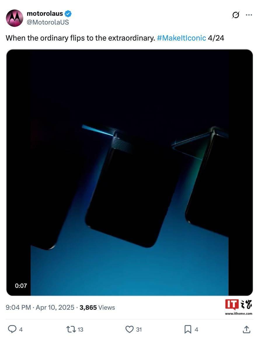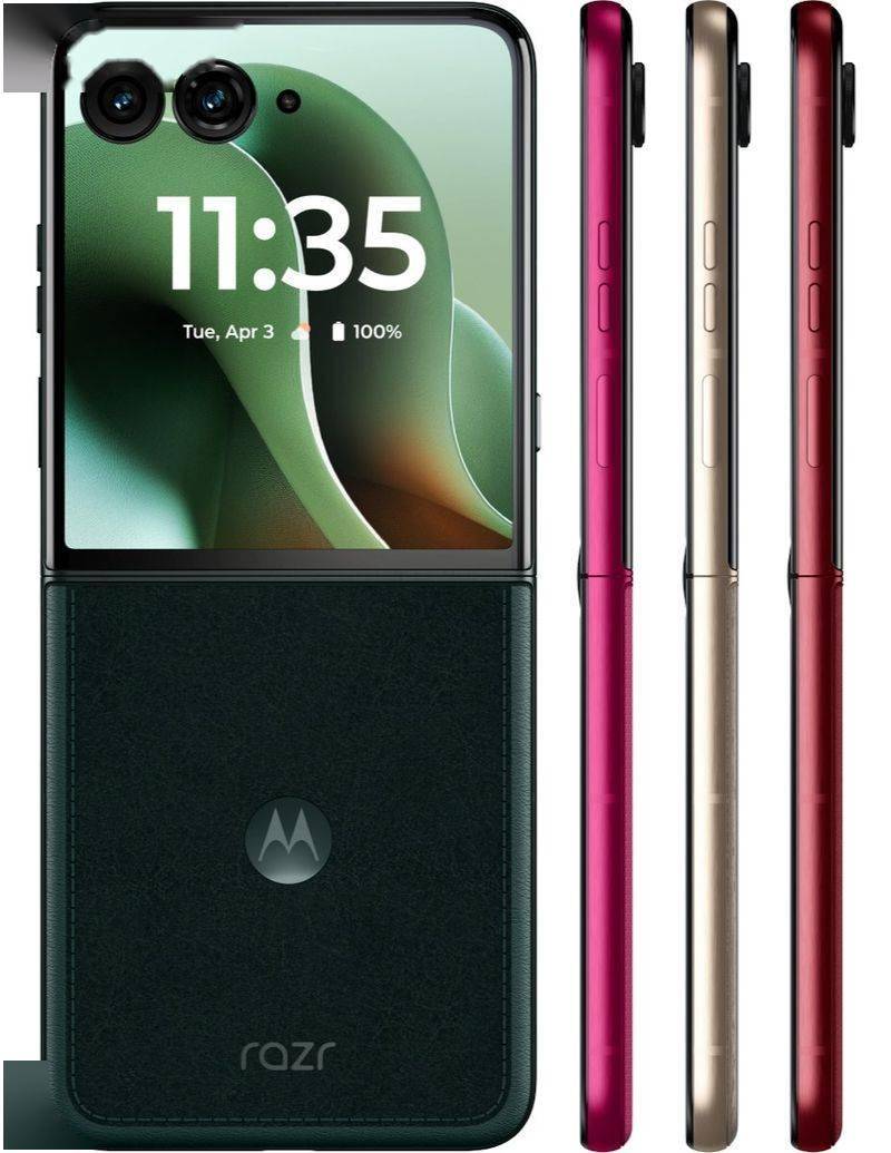 联想宣布旗下摩托罗拉 moto razr 60 / Ultra 小折叠手机(海外名为摩托罗拉 razr 2025 / razr Plus 2025)将于 4 月 24 日发布。 目前,其中的摩托罗拉 moto razr 60 Ultra 手机已多次曝光,该机拥有深绿(Dark Green)、里约红(Rio Red)、粉色(Hot Pink)三款标准配色,另有一款采用特殊木质纹理背板的版本。 该机预计将配备 6.96 英寸可折叠 LTPO AMOLED 主显示屏和 4 英寸外屏,内置骁龙 8 至尊版芯片组;后置 5000 万像素双主摄,前置 5000 万像素自拍镜头。该机电池容量为 4500mAh,提供 8GB / 12GB / 16GB 三种 RAM 内存与 256GB / 512GB / 1TB 三种存储空间组合。 作为比较,摩托罗拉 moto razr 50 Ultra于 2024 年 6 月在全球上市,该机国行价格为 3699 元起,搭载骁龙 8s Gen3 处理器,提供摩登艾绿、复古丹宁、柔和桃限定版配色,支持 IPX8 防水,采用第五代星轨转轴,配备 4.0 英寸外屏、6.9 英寸内屏,支持 165Hz 高刷。