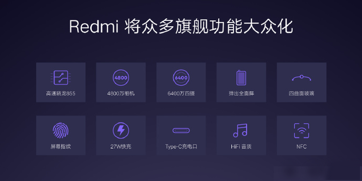 这些旗舰功能包括高通骁龙855移动平台、弹出式全面屏设计、四曲面玻璃机身、6400万四摄、4800万相机以及屏幕指纹,并且支持27W快充、多功能NFC、Type-C充电接口、HiFi音质等等,而即将发布的Redmi K20 Pro尊享版将会有不少升级。