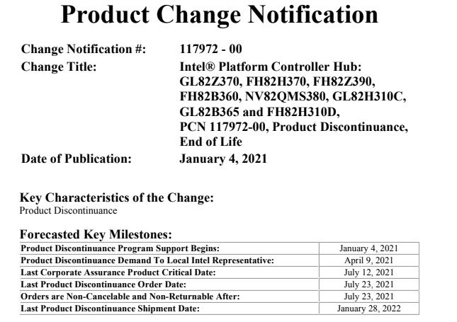 据外媒 anandtech 消息,英特尔于 1 月 4 日发布通知,宣布将停产 300 系列主板芯片组,包含 Z390、Z370、B365、H310、QMS380。该系列芯片组于 2017 年发布,适用于英特尔第 8 代、9 代处理器,比如酷睿 i7-8700K、i9-9900K。