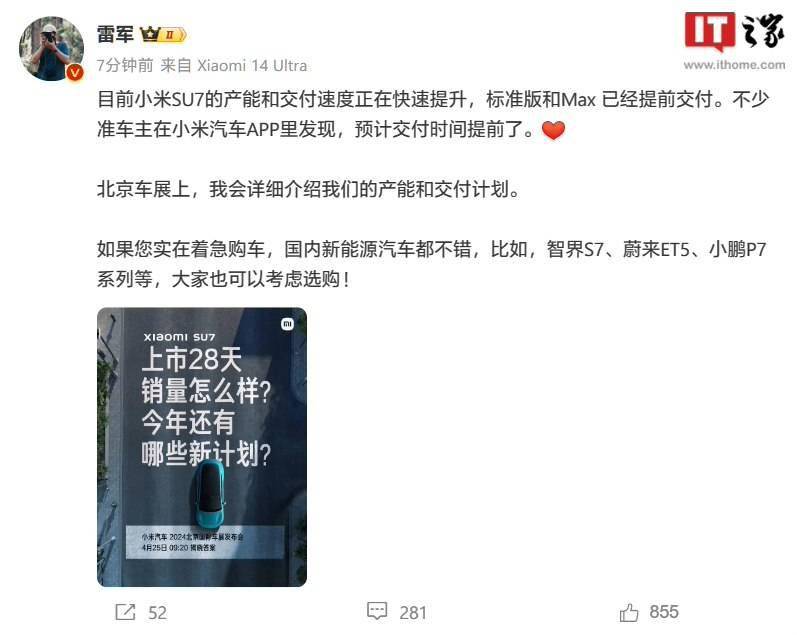 据财联社报道,经过走访多家新能源汽车门店后发现,蔚来线下针对已下定小米 SU7 的消费者推出了相应补贴。 蔚来汽车门店销售表示:“只要您下单,我们同样补贴 5000 元。我们的‘大定’也是 5000 元,而且即便是您锁单,工厂排产了,也随时可以退定金。” 报道还提到,小鹏、理想等门店销售称,多款车型已经调整售价或推出限时补贴,不再针对小米 SU7 锁单车主推出单独优惠。 而在昨天就已经有国内媒体报道称,“重装上阵”的智界 S7 开始“截胡”小米 SU7 的订单。具体来看,就是购买任意一款智界 S7,在付完尾款后,直接在车价上抵扣小米 SU7锁单不可退的 5000 元定金。四川成都一家华为授权体验店工作人员称,“确实有这样的政策”。 雷军在昨天下午疑似对此事作出回应:“如果您实在着急购车,国内新能源汽车都不错,比如,智界 S7、蔚来 ET5、小鹏 P7 系列等,大家也可以考虑选购!”此后,智界、小鹏汽车官微发文对雷军的“推荐”致以感谢。