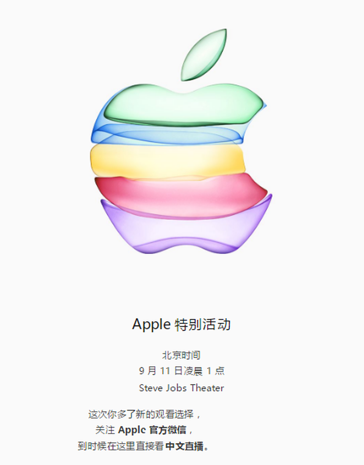 8月30日消息,昨日苹果正式向媒体发布邀请函,宣布将于美国当地时间9月10日正式举办新品发布会。令人惊喜的是,苹果邀请函上的苹果Logo采用了彩色半透明的设计,此次发布会的主题为“致创新”。