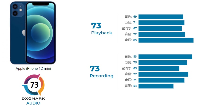 [评论] DXOMark 苹果 iPhone 12 mini 音频得分 73 分,暂列第八