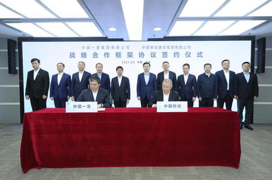 新浪科技讯 3月12日下午消息,中国移动与中国一重今日签署战略合作框架协议。中国移动董事长杨杰、副总经理简勤,中国一重董事长刘明忠、副总经理隋炳利出席签约仪式。 根据协议,双方将按照平等互利、合作共赢、共同发展的原则,在落实深化5G+工业互联网、云能力协同、DICT解决方案、基础通信服务、创新合作模式及国际业务等领域开展全面合作。 此前,双方已在5G+智慧工厂方面开展合作。未来,双方将以本次签约为契机,整合各自技术、人才等方面资源,进行优势互补、渠道开放和资源共享,在智能制造领域共建共赢,携手推进通信行业与制造行业的创新融合发展。(张俊)