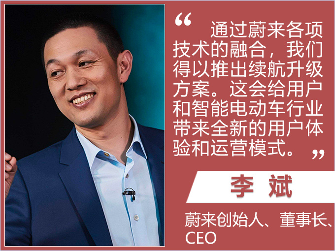 4月11日,蔚来宣布将于2019年5月1日开放ES8 84kWh电池选装包,价格为5万元。选装84kWh的ES8 NEDC续航里程为425km,将于7月起开始交付。而在蔚来2019年度续航升级方案中,具体包括灵活升级和永久升级两种方式,将于9月正式开启。