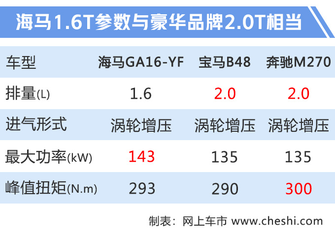 海马8S整体尺寸与同级竞品荣威RX5、哈弗H6相当。动力方面,海马8S搭载海马自主研发的1.6T发动机,热效率达到37%,领先丰田1.2T/2.0T发动机(36.2%)。发动机最大功率为143kW,峰值扭矩为293N.m,参数表现与市场上大部分2.0T发动机相当。新车传动系统匹配6MT、6AT变速箱,百公里加速最快仅需7.8秒。 总结:作为海马汽车的旗舰SUV,海马8S无论是外观、内饰设计,还是12.3英寸全液晶仪表、主动安全系统、拥有8种组合开启方式的全景天窗等多项高科技配置,都表现出了十足的诚意。不仅如此,海马8S搭载的全新1.6T发动机也是一大亮点,可以实现7.8秒完成百公里加速,再加上不到8万元起步的定价,8S完全有实力去攻打哈弗H6、荣威RX5等同级热销车型。
