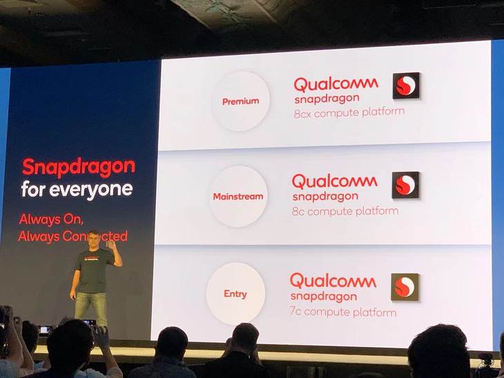 今天,高通在骁龙峰会上正式推出了全新的Qualcomm®骁龙™计算平台产品组合,包括面向高端市场的骁龙8cx企业级计算平台,面向大众市场的骁龙8c,以及面向入门级市场的骁龙7c,这三款产品均具备了持久续航、高速蜂窝网络连接以及AI性能加速的特性,能够为PC带来无风扇的轻薄设计。基于骁龙计算平台的产品组合,未来终端厂商能够为推出不同价位段的始终在线、始终连接的PC产品,为消费者带来全新的移动办公体验。