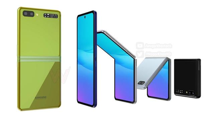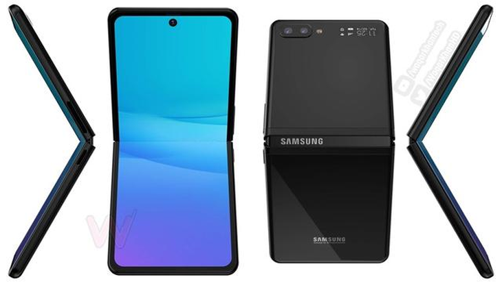 目前国外已有网友针对该手机的相关信息制作了一组渲染图,图中显示,三星这款全新折叠屏手机在折叠后可通过左下角的小屏幕读取时间、天气等信息。展开后的屏幕采用了挖孔式设计,机身背部则为横向排列的双摄相机模组。