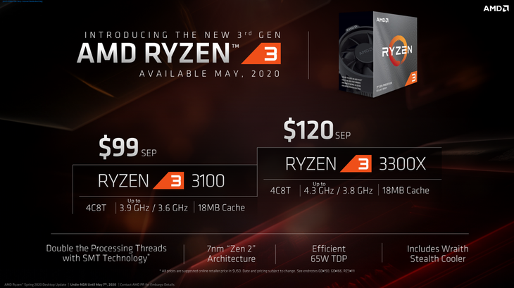 特别是,通过实际测试之后,笔者惊喜地发现AMD还为锐龙3 3300X以及锐龙3 3100这两款新一代锐龙3系列台式机处理器预留了比较大的超频空间。玩家们只需动动手,即可让新一代锐龙3跑得更快。这对于渴望超频的A饭们来说实在是非常的难能可贵! 根据AMD官方公布的PPT可知,锐龙3 3100官方指导价为99美元,锐龙3 3300X官方指导价为120美元。参考锐龙5 3500X目前999元的国行零售价来推测,这两款新一代锐龙3系列台式机处理器肯定都不会超过999元。