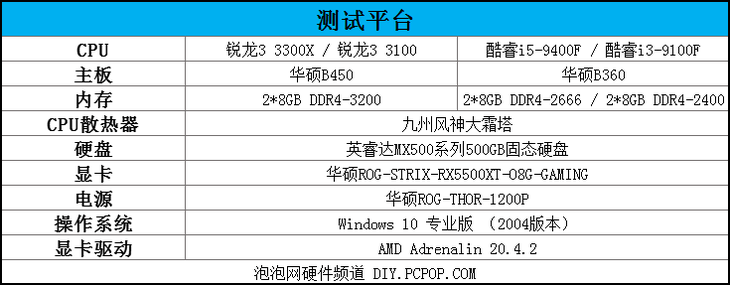 此次评测,除了测试锐龙3 3300X以及锐龙3 3100这两款新一代锐龙3系列台式机处理器,笔者还加入了酷睿i3-9100F和酷睿i5-9400F的性能成绩,以作对比。 显卡选用的是1499元价位的RX 5500 XT,搭配千元内乃至千元左右的处理器使用非常般配。