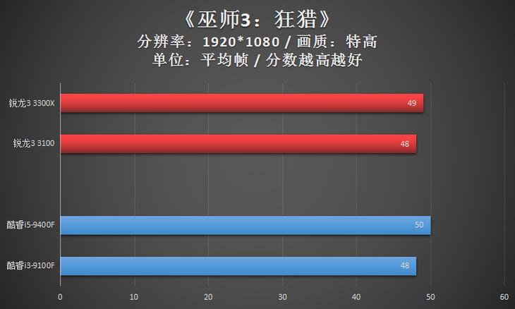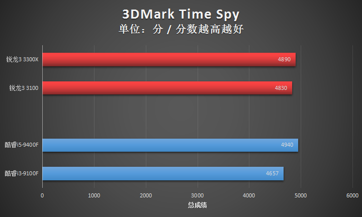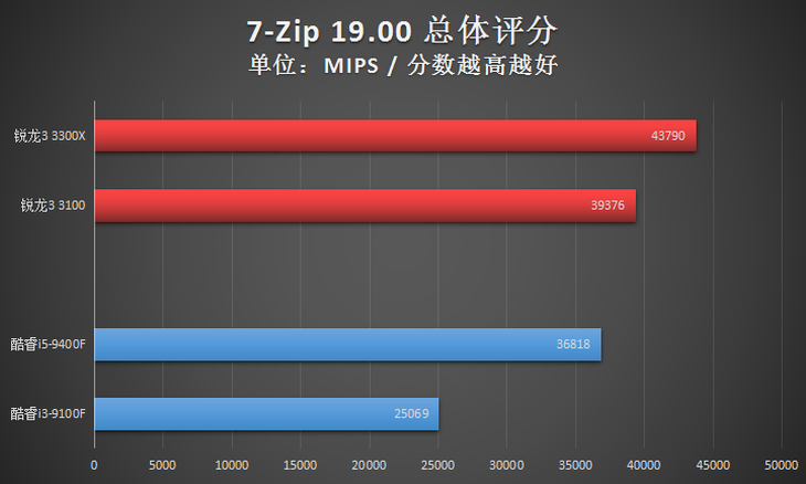 测试小结:锐龙3 3300X以及锐龙3 3100这两款新一代锐龙3系列台式机处理器与更高端的酷睿i5-9400F基本上处于同一水平。