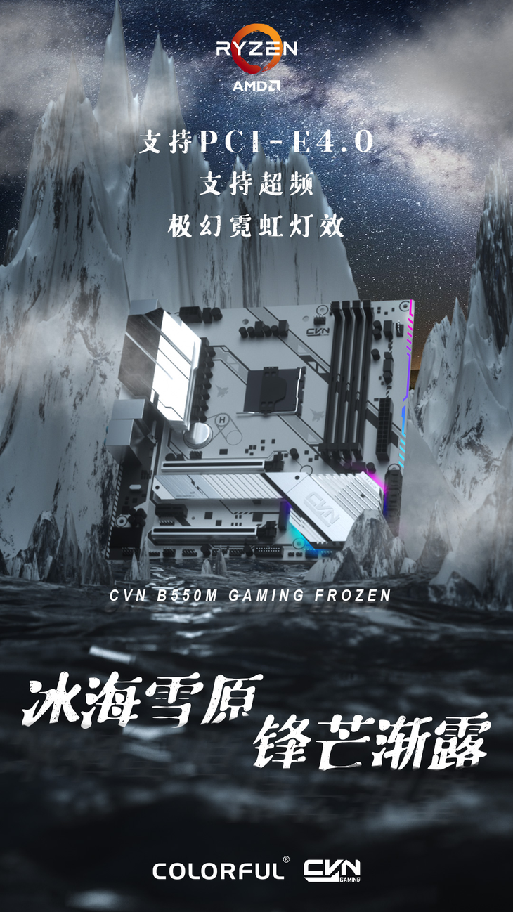 七彩虹作为AMD全球重要合作伙伴之一,此次同步推出CVN系列B550主板,分别为CVN B550M GAMING PRO和CVN B550M GAMING FROZEN。