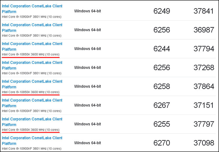 从Geekbench数据库的跑分成绩来看,酷睿i9-10850K与旗舰级的酷睿i9-10900K几乎一样。笔者猜测,酷睿i9-10850K有可能是面向OEM市场的型号。 特别提醒:本文来源互联网,目的在于传递更多信息,如有冒犯联系清删