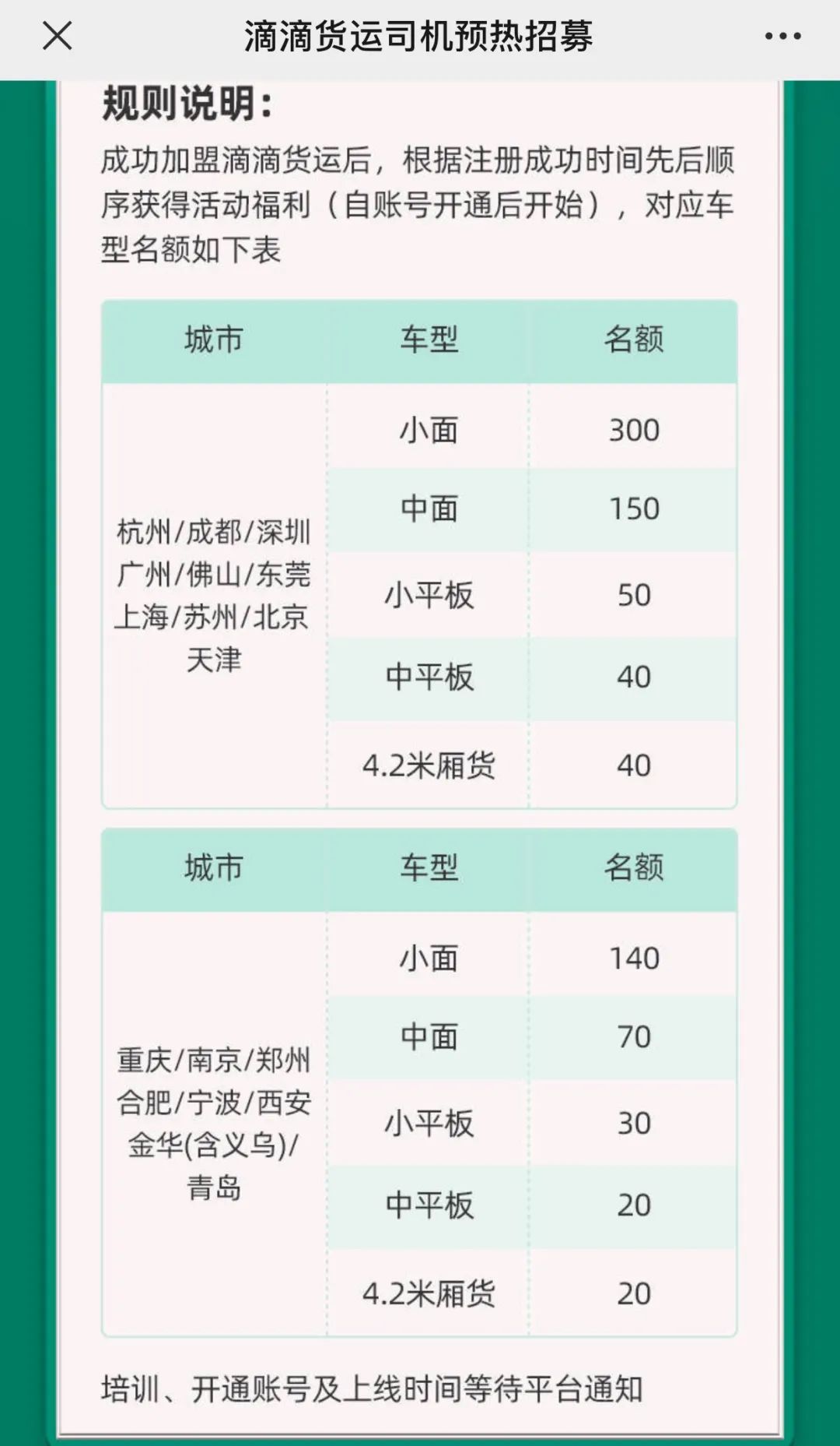 滴滴货运招募司机页面,图源滴滴货源官方公众号 不过,滴滴进入的货运市场早已盘踞各路玩家,其中满帮集团、福佑卡车等专注中长途干线物流,货拉拉、快狗打车(原58速运)专注同城配送。 面对一众老大哥,新入局者滴滴,很难抢得一定份额。 据满帮集团官方披露,早在2018年,中国干线货车700万辆中有520万辆是满帮会员,中国物流企业150万家中有125万家是满帮会员。 这意味着,新入局者要么抢占满帮的会员,要么重新拓展新会员,但两种路径都需要耗费大量成本,滴滴或许很难分出资金来抢夺货运市场份额。 其次,同城货运市场的难度也不小,其标准化建设远比快车等复杂,更重要的是同城货运频次低,市场需求量远比日常打车少,这就意味着很难形成较大的交易量与司机日活量,想要通过抽佣实现盈利,难度远比网约车大。 滴滴也在充分发挥平台上的运力价值,今年疫情期间还推出了跑腿业务,最先在杭州和成都试点,首批滴滴跑腿员由滴滴代驾司机担任,为社区居民提供生活物资的代买服务。后续滴滴跑腿覆盖的城市将逐步扩大,并面向社会招募跑腿员。 随后,滴滴还直接入局社区团购,在今年6月在成都上线“橙心优选”, 主营粮油食品,生鲜蔬果等生活必需品。 如今的滴滴,不仅在拓展出行领域的相关业务,更在布局与出行不相关的各种业务。 这些试水,也在帮助滴滴讲一个更好的“增长”故事,但值得注意的是,这些业务无一不需要大量的资金投入,短时间内很难盈利。同时,向生活服务领域的拓展,也会面临美团、阿里等劲敌,陷入“烧钱抢用户”的消耗战,而在新领域的争夺赛,还有投资人愿意“陪跑”吗? 3、现在可能是滴滴最好的上市时机 “我们面对过摇摇、大黄蜂、快的、Uber,一些公司后来合并了,有些同学还在滴滴,也有人离开了。”程维在八周年演讲中表示,“我们经历过最残酷的战役,面对过国内外最强大的对手。” 时至今日,网约车市场经过几轮兼并,滴滴在吃下快的、Uber两大国内主要竞争对手后,牢牢占据着网约车市场的绝对领先地位。 2018年12月,普华永道旗下战略咨询公司思略特发布《出行市场的下一个五年》报告,其中显示到2018年9月,形成了滴滴占比超九成,美团、首汽、神州、曹操、易到在局部区域各自略有份额的市场格局,这5家平台的具体占比情况为:滴滴91%、美团2%、首汽2%、神州2%、曹操2%、易到1%。 时隔一年,据第三方数据服务公司Talking Data数据显示,截止2019年第三季度,在过去12个月,滴滴占网约车市场日活跃用户总数93%。 虽然滴滴面临着各方挑战,但目前尚未出现撼动其地位的对手。不过,这并不意味着滴滴可以高枕无忧。 2017年2月14日,程维正与美团创始人王兴一起吃饭,彼时的程维根本没想到与之谈笑风生的王兴,已经在背地里拔刀相向。 数小时后,离开饭局的程维,在网上看到了美团在南京上线网约车业务,这立即挑起了程维的好战情绪,他当即指令滴滴停掉与美团的合作接口。 “如果别人都要打上门来了,你还要假惺惺跟他合作,就没必要了。”程维在接受财经采访时说。 一年后,美团打车继续扩张版图,正式在上海上线,一开始就直接开启补贴大战,据美团公开数据显示,上线首日,美团订单量突破15万,第二天拿下20万,第三天拿到30万,这直接抢走了滴滴的市场份额。 时隔几天后,在中国发展高层论坛上,王兴更是表示,美团打车在入驻城市已经拿到了1/3的市场份额。 好战的程维自然不可能坐以待毙,在美团开启打车业务的次月,滴滴在无锡上线外卖业务,同样采取简单粗暴的补贴方式,直指美团核心腹地。 仅仅8天后,滴滴官方宣布,日订单达到33.4万单,超过美团、饿了么,稳居第一。