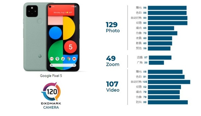 ZOL了解到Pixel 5配备了双摄像头配置。主相机搭载1220万像素的1 / 2.55英寸传感器,f / 1.7镜头,等效焦距27毫米,支持光学图像稳定和相位检测自动对焦。副摄具有1600万像素,107度视野的超广角镜头和f / 2.2镜头。 DXOMARK评价: Pixel 5 的硬件稍差,因此在诸如纹理、噪点、散景和变焦等属性方面均落后于性能最佳的手机,因为更好的传感器和镜头确实对这些属性有所助益。不过,谷歌手机的主摄像头可拍出出色的图像,在曝光、色彩和自动对焦等基本属性方面的得分都接近最高分。因此,我们对标准摄像头没有太多的牢骚(但也许噪点除外),而且比起类似的双摄像头手机,Pixel 5 也凭借其强大的软件功能,表现得毫不逊色。更重要的是,谷歌 Pixel 5 可录制令人赏心悦目的视频,自动对焦和防抖功能也令人印象深刻,堪为智能手机摄影领域的佼佼者,也不会跟您的钱包过不去。