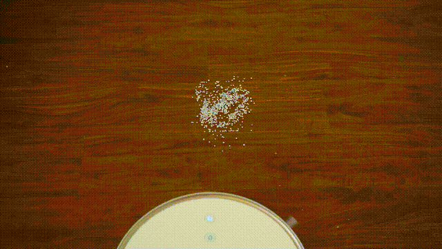 清洁测试 扫地机买回家肯定还是要用来扫地的,那么这款拥有2700Pa吸力的云米凌厉1A扫地机在清洁方面的表现如何呢?我们模拟日常生活设置了一系列实验进行测试 小颗粒垃圾测试 我们用泡沫小球模拟日常生活中想纸屑,食物碎屑等小颗粒垃圾,选择云米凌厉1A的标准档模式进行清扫。