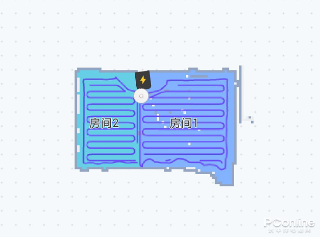 总的来说,云米凌厉1A的清洁效果还是相当喜人的,标准档模式下就足以应对生活中的绝大多数垃圾,在面对地毯或是地板缝隙等较难清洁的地方,强力档高达2700Pa的吸力也能轻松胜任。一次性拖布和电控出水,也让拖地功能用起来更加舒心。 路径规划 扫地机在吸的干净的同时,同样还要覆盖全面,不漏扫或重复打扫,而这就需要更为智能以及先进的路径规划。市面上的扫地机常见的路径规划有陀螺仪规划、LDS激光规划和视觉规划,云米凌厉1A采用的就是LDS激光雷达规划。 启动云米凌厉1A,扫地机最上面的LDS激光雷达会快速识别周围环境,进行一次全局清扫后,就能在手机APP上绘制出房间的地图,同时云米凌厉1A还会自动的对房间进行划分,然后进行分区打扫。 那么云米凌厉1A的路径规划如何呢?我们在绘制完地图后,启动扫地机进行一次全局清扫。可以看到在这个较为规整的房间里,云米凌厉1A的路径规划是十分的清晰,从APP上的路径图也可以看到,基本上完全覆盖了房间的每一个角落,而且没有出现漏扫的情况。
