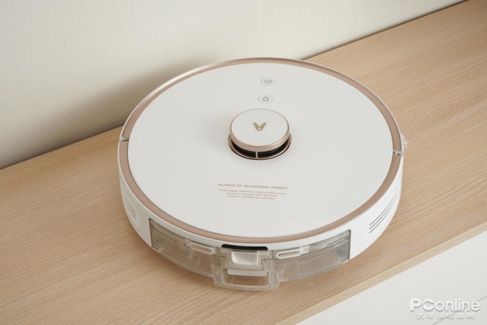 那么这款能够自动集尘的云米互联网集尘扫拖机器人凌厉1A能否解决这个扫地机做大痛点,解放我们的双手呢?评测告诉你答案。 外观赏析 我们拿到的这款云米凌厉1A整体采用纯白配色,顶面采用光面塑料,侧面则为磨砂塑料。边缘则是用玫瑰金色进行点缀,机身上的logo也都采用玫瑰金色,让整体白色的机身不会显得那么单调,显得十分的优雅大气。