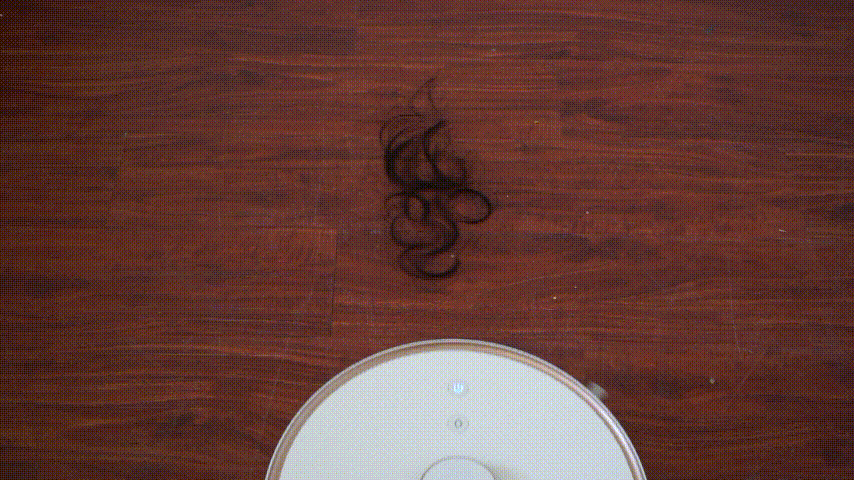 可以看到,在标准模式下,虽然云米凌厉1A无法做到一次吸净,但是第二次就可以将残留的灰尘清洁干净了,表现还是相当不错的。 毛发测试 对于女性朋友或是养宠物的家庭,毛发绝对是清洁过程中的一大难题,云米凌厉1A在面对各种毛发时,表现依然出色,在标准档下就能轻松将毛发一吸而净。