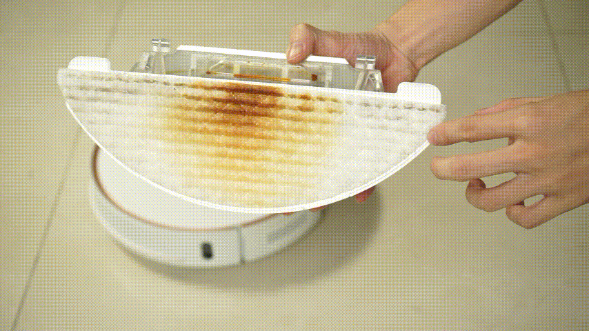 此外,云米凌厉1A还配备了一次性拖布,使用过后直接撕下扔掉即可。避免了吸拖一体机擦地结束后还要手动勤洗拖布的尴尬情况,既卫生又方便。