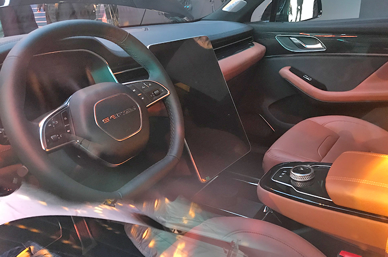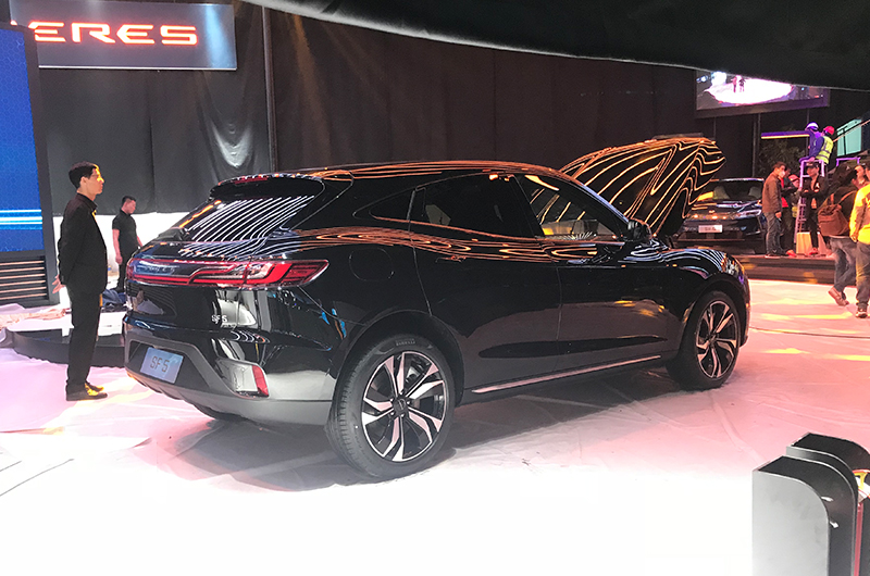 SF 5尾部整体来看还是显得比较圆润饱满,且层次分明,尾部下方为黑色哑光塑料包围且装饰有扩散器效果,排气对于一款新型电动车型则就显得不那么重要了。尾灯也是SF 5外观方面的一大亮点,使用了当下流行的一体式贯穿式尾灯,点亮后的效果也十分不错,且尾灯带上的SERES标识采用了发光字母,与车身同色。