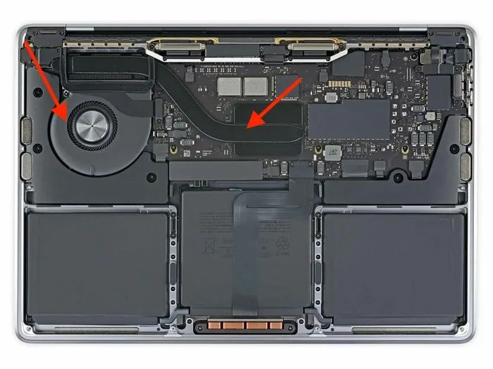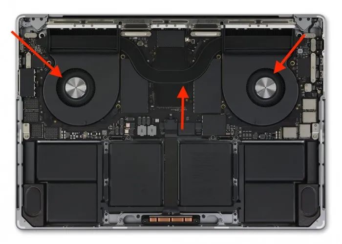 (MBP M2拆机) 至于为什么M1没翻M2翻,也只能说它俩的功耗差,恰好就撞破了这套老模具的主动散热极限点。 事实上,连M1都跑到了94℃这个完全不健康的温度,也都算在临界点附近纵跳了。 苹果会不知道吗? NO,苹果清楚得很!