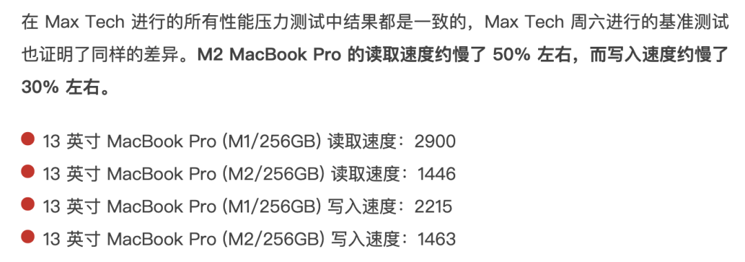 当时,不少人拿到新款MBP后,都发现比起上代,不论是硬盘读取速度还是写入速度,都要慢50%和30%不等。