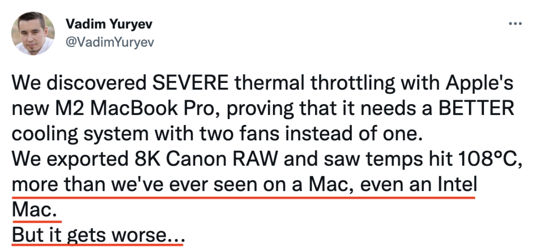 这比我们在任何Mac上看到的(温度)都要高,即便是此前英特尔Mac,但可以说它的情况更糟...