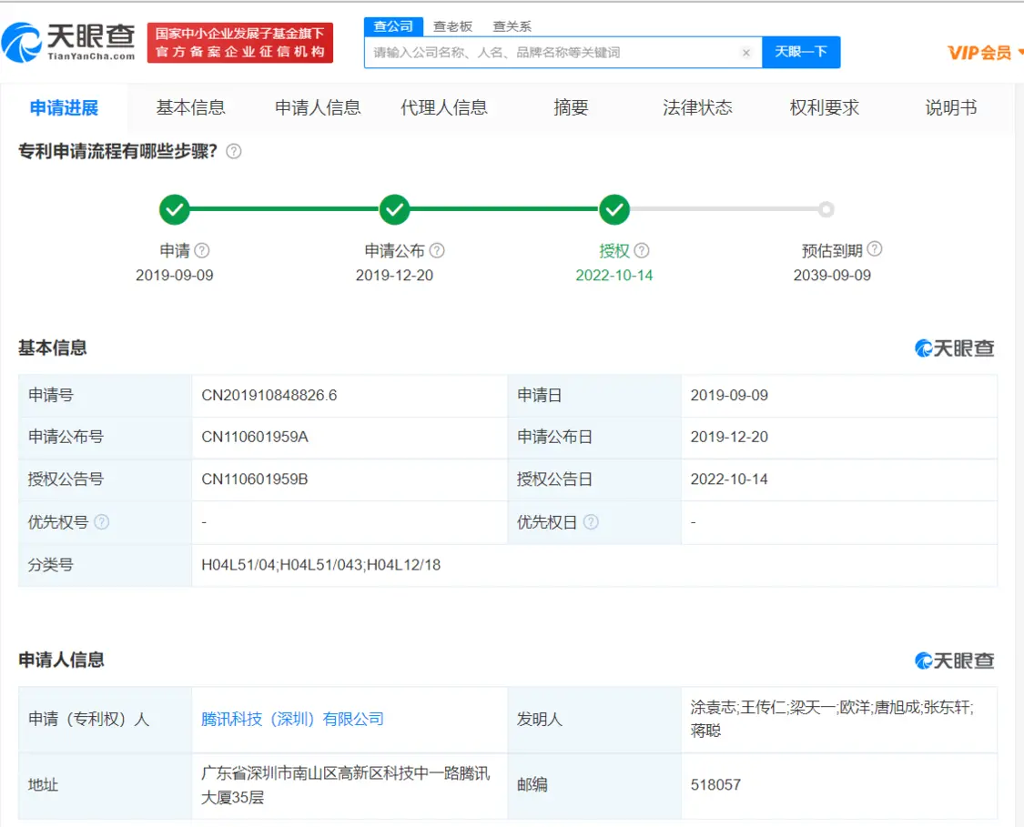 10月14日消息,天眼查App显示,腾讯科技(深圳)有限公司“会话消息显示方法、装置、终端及存储介质”专利获授权。