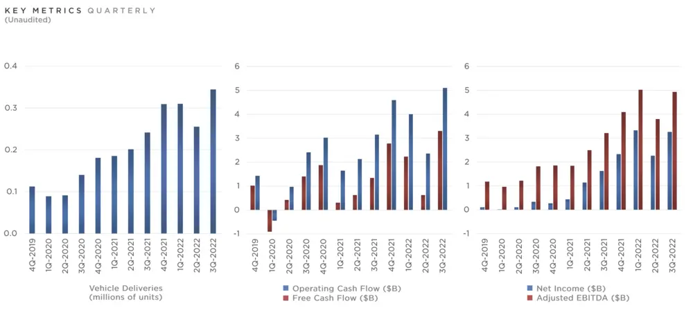 Model 3(图源:视觉中国) 马斯克的回答是,还没有没有确切的日期,但特斯拉开发团队的主要精力是开发下一代车型。他很确定的是,“下一代车型会更小,而且产量将超过特斯拉所有产品的总和。”至于成本问题,马斯克希望能够再次达到50%的降幅。也就是说,相比现在的Model 3/Y,成本再下降一半。 众所周知,特斯拉在全球范围内的车型价格变化都是遵循着“以成本定价”的原则。成本越低,那么售价也就越低,反之亦然。目前,国产特斯拉Model 3入门级车型的补贴前售价为290,988元,如果成本减半的话,售价大概率也能减半——这意味着,15万元买辆特斯拉指日可待。 当然,“半价特斯拉”短期内不会问世,但成本下降50%这一数字并非空穴来风。要知道,特斯拉的成本下降,一直以来都是通过规模化效应来推动的。在财报电话会上,马斯克表示,我们相信特斯拉的收入和产量将以50%的复合年增长率增长。 而根据最新财报数据显示,2022年第三季度,特斯拉全球生产了超过36.5万辆汽车,同比增长54%;交付了超过34.3万辆汽车,同比增长42%。而总收入达到215亿美元,同比增长56%。在收入和产量方面,当前已经超过了50%的增速。