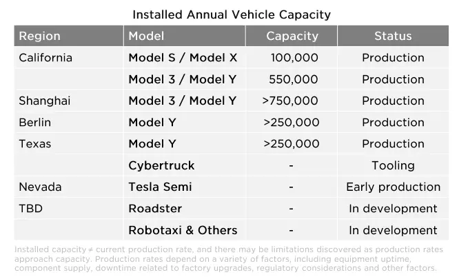 (图源:特斯拉财报) 在增长的态势中,特斯拉依旧是面临着挑战。比如,在特斯拉汽车毛利率已经连续两个季度低于30%。另外,有投资者对特斯拉需求侧表示担忧,特别是中国市场方面,特斯拉9月在华电动车销量增速为近五个月最低水平。面对种种的客观因素,马斯克对特斯拉的市场需求依旧表示自信——我们在第四季度的需求强劲。“无论是否发生什么,我们都不会大幅减产。” 交付仍是大问题 目前让特斯拉头疼的问题确实不是需求,而是交付。 当前,特斯拉五座工作已经进入“火力全开”的状态。其中上海特斯拉超级工厂的产能最大,超过了75万辆的年产能,主要生产Model 3/Y;其次是美国加州的工厂,年产55万辆Model 3/Y和10万辆Model S/X;得州超级工厂开工不到半年,但已经产了10,000辆Model Y;刚起步没多久的柏林工厂,相对有点“拖后腿”。单周生产了超过2000辆搭载2170电池的Model Y,仍处在产能爬坡阶段。 负责生产的电动卡车Semi的内华达工厂,目前已进入早期生产阶段,首期交付计划于今年12月开启。在财报电话会上,马斯克明确表示:12月1日,他将亲自向百事公司交付特斯拉电动卡车Semi。相比以往较为确信的用词,在谈到新车型Semi交付时马斯克显得格外谨慎。他还说,特斯拉“暂时计划”到2024年在北美市场交付5万辆电动卡车Semi。