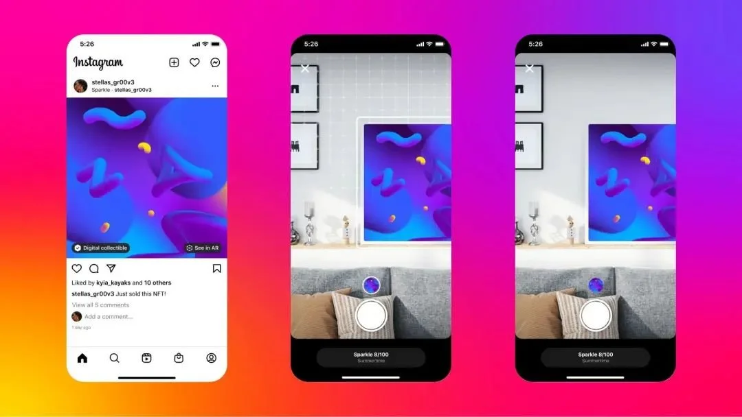 背后的原理是,Instagram 从开放的区块链(例如以太坊)收集和组织公共数据,用户将数字钱包连接到 Instagram 时,Instagram 可以根据这些数据将 NFT 和用户对应。 当用户发布 NFT 图像,Instagram 就会为图像添加闪光效果,并显示有关 NFT 的详细信息,直观地展现这个 NFT 是真实的,也只为你所有。 如果闪光效果还不够瞩目,Instagram 还计划使用 AR 技术,在快拍中展示 3D 的 NFT。