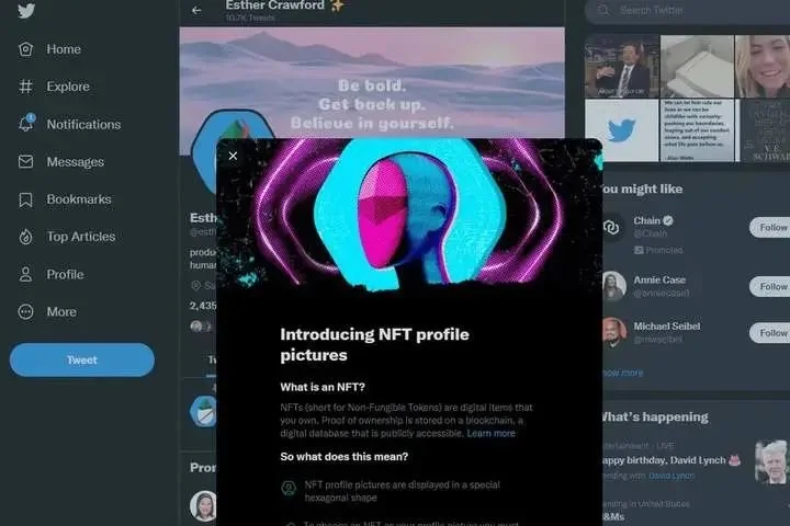 图片来自:Financial Times 不管目标一致与否,为 NFT 布局的社交媒体,不止 Instagram 一个。 今年 1 月,Twitter 允许用户将 NFT 作为个人头像,并提供「NFT 头像认证」。 首先,你需要拥有一个货真价实的 NFT,也就是加密钱包中持有 NFT;其次,必须订阅每月 2.99 美元的 Twitter Blue 服务,才能将加密钱包临时连接到 Twitter 账户,由 Twitter 向钱包地址发送验证请求。