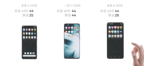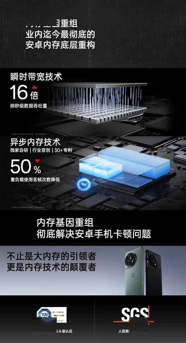 一加11在发布会上正式亮相。 作为一款顶级旗舰,性能是一加11最大的亮点之一,其硬件上搭载了第二代骁龙8+满血版 LPDDR5X+满血版 UFS 4.0的顶级性能铁三角。 值得一提的是,一加这次关注到了用户经常反映的很多旗舰手机也会不可避免的出现卡顿,这其实是安卓底层架构的问题,没能跟上硬件的发展。 而这次一加11全球首发了内存基因重组技术,从系统底层入手,实现业内迄今最彻底的安卓内存底层重构。 借助瞬时带宽技术、异步内存技术、应用预计加载技术及专属空间技术四项科技,明显改善了安卓系统以往的卡顿,获得了南德48个月A级流畅认证、SGS人因流畅性A+认证。 而在后台应用主流测试中,一加11后台应用驻留最多达44个,后台驻留能力同平台第一,遥遥领先竞品。 另外,这次一加11还做到了12GB超大内存起步,这也极大的提升了用户使用体验。