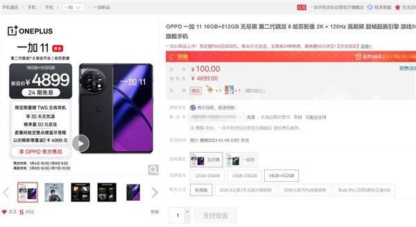 一加11在一加京东自营店开启预售,截至目前,一加11在京东自营店已经被抢购一空,用户还可以在OPPO商城下单。 据一加科技李杰透露,一加11打破了一加手机销售纪录,成为了最火爆的一加旗舰。如此火爆的原因,与一加11的定价密不可分。 该机起售价是3999元,李杰表示,一加11这价格能震惊整个手机行业。是一款充满诚意的数字旗舰。发布会现场讲到的,就是你真正能拿到手的体验。 该机全球首发LTPO 3.0技术,一加联合三星重新绘制LTPO运行机制,独家定制屏幕IC,做到屏随手动,精准自适应,再次引领屏幕流畅体验,并且省电。 而且这是首款支持杜比视界的一加手机,带来不可思议的亮度、对比度、细节与色彩。其屏幕尺寸是6.7英寸,分辨率为2K,刷新率为120Hz,支持HDR10+画质及独家自研的超频响应技术。 此外,在这块2K屏幕上,一加11还实现了随动变帧”、“瞬时起落”、“智能场景自适应”三大关键体验突破,让屏幕流畅体验更进一步。 核心配置上,一加11采用6.7英寸2K AMOLED柔性屏,分辨率为3216×1440,搭载高通第二代骁龙8移动平台,前置1600万,后置5000万+4800万+3200万三摄,电池为5000mAh,支持100W有线闪充。