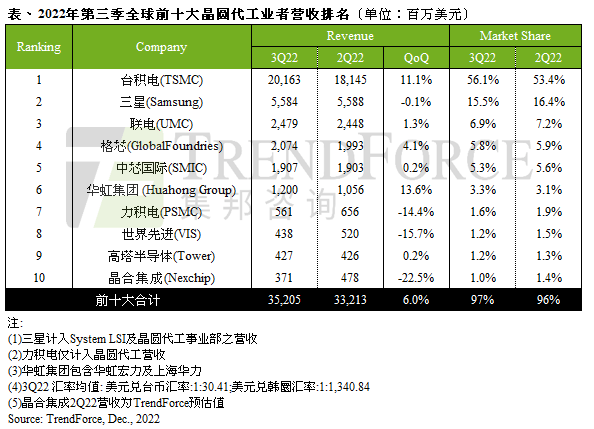 按照TrendForce统计,截至去年三季度,全球十大晶圆厂的前五分别是台积电、三星、联电、格芯和中芯国际。 份额方面,台积电独霸行业半壁江山,市占高达56.1%,三星则下滑到15.5%。 因为4nm骁龙8 Gen1表现不佳,高通目前的主力产品骁龙8+ Gen1、骁龙8 Gen2等都转单台积电代工,甚至另一颗重磅芯片SM7475(骁龙7+或者骁龙7 Gen2)同样该由台积电代工。 加之苹果、NVIDIA、AMD不约而同信赖台积电,三星可谓如坐针毡。 据DT报道,三星正用提高的良率和极具优势的报价拉拢高通,当然不是3nm/4nm,而是6nm。除了高通,三星还在寻求机会“勾搭”台积电的邻居联发科。 6nm作为7nm的改良版,在过去两年都是台积电第一大收入来源。 另外,虽然6nm对于手机芯片不算先进,但对于SSD主控、车载MCU、物联网芯片、Wi-Fi 7芯片等,则还是稀罕物。