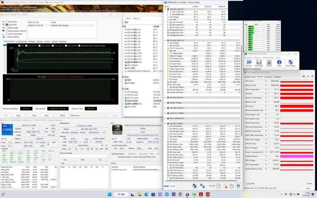 笔吧评测室作为老牌评测媒体,一直都是IT之家编辑们学习笔记本相关知识的必读公众号。十多年前浪歌就在贴吧追猪王的测评了。进入新媒体时代,猪王对笔记本的评测依然不失幽默和客观,他家的B站视频也是整活乐子层出不穷,在此向大家强烈推荐! LG旗下的gram系列笔记本我们每年都会推荐,因为它拥有大屏幕、超轻机身、长续航,是笔电领域独一档的存在,几乎没有竞品。 Acer的传奇edge产生过威胁,但那台电脑续航不咋地。 到了2023年,LG gram开始提升性能了,它采用了13代酷睿P28系列处理器,并增加了功耗。 更重要的是,它搭载了RTX3050独立显卡,正式从“大屏轻薄本”转型为“大屏全能本”,且重量依旧比竞品轻很多。 那么这台电脑实测表现如何? 今天我们就来简单分析一下: LG gram 17 独显版 左滑看接口 机身左侧 机身右侧 它的配置如下: i7-1360P 处理器 RTX3050 4GB 独立显卡(40W) 32GB LPDDR5 6000MHz 内存 1TB 固态硬盘 17英寸 2560x1600分辨率 100%DCI-P3色域 144Hz刷新率 IPS屏 电池容量 90Wh 厚 16.1~17.5mm 机身重 1.43kg 适配器重 284g 它的优缺点如下: 优点! 1,续航表现较好,搭载90Wh大电池 2, 在同配置笔记本里,重量较轻 3,内存硬盘容量较大 缺点! 1,高负载下散热表现一般 2, 价格较贵 3, 机身缺少金属质感 【升级建议】 这台笔记本电脑拆机并不难,但所有螺丝都藏在脚垫和小圆片下面,需要全部取下才能卸下螺丝,之后撬开卡扣,即可取下后盖。 双通道32GB LPDDR5 6000MHz内存能满足大部分用途的需求,内存为板载无法更换。 测试机的固态硬盘容量为1TB,型号为三星PM9A1,支持PCIe4.0×4和NVMe。 需要注意的是,LG自行拆机可能会失去售后,所以如果你想升级固态硬盘,建议先咨询官方售后中心。 【购买建议】 1,对续航要求较高 2,想要屏幕够大的便携笔电 3,拥有五陵豪气的消费气质 LG gram 17 独显版最大的特点是配置变化,曾经一直是核显笔记本电脑,如今增加了独显,对其重量、续航都是考验。 屏幕方面,实测 色域容积102.4%DCI-P3,色域覆盖96.6%DCI-P3,在DisplayP3模式下,平均ΔE 2.56,最大ΔE 4.89,实测最大亮度490nit。 【注】由于校色仪无法正确读出校色文件,实际色准还会更好一些。 接口方面,机身左侧为HDMI2.0、双雷电4、3.5mm音频接口; 机身右侧为防盗锁口、双USB-A 10Gbps接口,以及Micro SD卡槽。 续航方面,它的PCmark10续航测试成绩为16小时5分钟,中高负载续航脚本的测试时长为6小时40分。 噪音方面,当环境噪音为33.2dB时,它的满载人位分贝值为42.3dB。 所以如果你想要一台性能表现更均衡的笔记本,且预算很高,那么这款LG gram 17 独显版比较适合你。 但如果你不需要什么独显,自身专注于日常办公+便携,那么我还是更推荐经典的核显版。 【散热分析】 上图是LG Gram 17 独显版的拆机实拍图,双风扇双热管的组合。 室温25℃ 反射率1.0 BIOS版本:R1ZH0320 X64 在满载状态下,开启冷却模式,CPU温度最高93℃,稳定在82℃,功耗15W,P核频率维持在1.7~1.8GHz,E核频率1.4GHz; 显卡撞到了温度墙,温度维持在77.6℃,功耗24W,频率1020MHz。 如果单烤Stress FPU,CPU温度稳定在87℃,功耗28W,P核频率2.8GHz,E核频率2.2GHz; 如果单烤Furmark,显卡温度维持在77.5℃,功耗33W,频率1372MHz。 左滑看背面温度 烤机背面温度 表面温度如上图所示,键盘键帽最高 44.9℃出现在功能键F6键周围区域,WASD键为40.8℃,方向键28.8℃。左腕托温度为29.2℃,背面中心点32.9℃。 总的来说,LG gram 17 独显版的散热表现一般,虽然整机功耗提升,但是在“独显全能本”领域仍然是保守的水平,且键盘温度偏高。 “核显轻薄本”与“独显全能本”的散热考量标准不同,我们对后者的要求要高于前者。 【猪王的良心结语】 根据我自己的喜好,其实我并不希望LG gram推出“独显版”,因为这让它变得不再纯粹了,且一万六卖3050独显会影响产品口碑,这么贵了大家会下意识地想要RTX40系显卡。 你很难给消费者解释“小封装”概念。 万幸的是,LG依旧有更新“核显版”,所以在我看来,多一个选择永远是好事儿,如果真有一些普通游戏需求,那可以考虑多100g换游戏性能,不需要的话买核显版就是。 不出意外的话,今年我会长期使用这款LG gram 17独显版作为我的日常办公笔记本,如果后期有更多的心得体会,那我也会总结分享给大家~