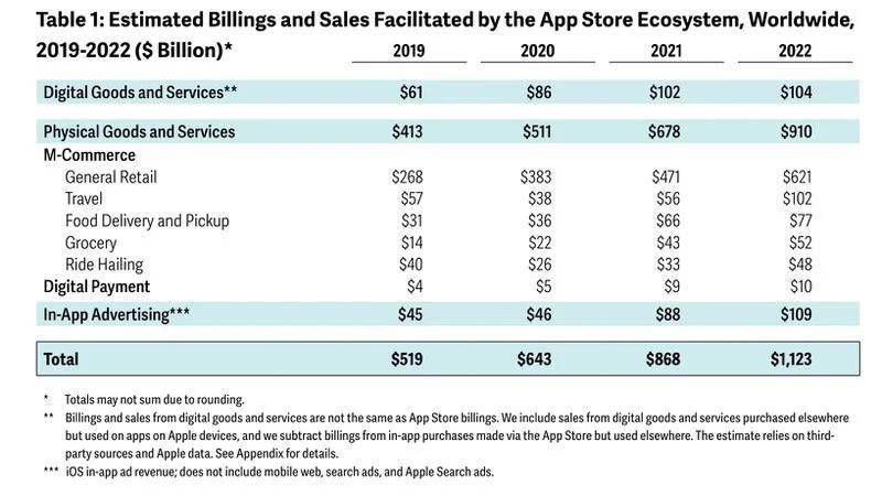 苹果今天发布新闻稿,表示在 2022 年继续推进和完善 App Store 生态系统,帮助开发者创下 1.1万亿美元(IT之家备注:当前约 7.79万亿元人民币)营业与销售额。 苹果公司赞助 Analysis Group 经济学家,统计了 App Store 的开发者账单和销售额,进一步凸显了 App Store 生态的优势,以及帮助诸多开发者走向成功。 IT之家在此附上主要数据信息如下: - 开发者营业与销售额在 2019 到 2020 年间增长了 27%;2020 到 2021 年间增长了 27%;2021 到 2022 年间增长了 29%。