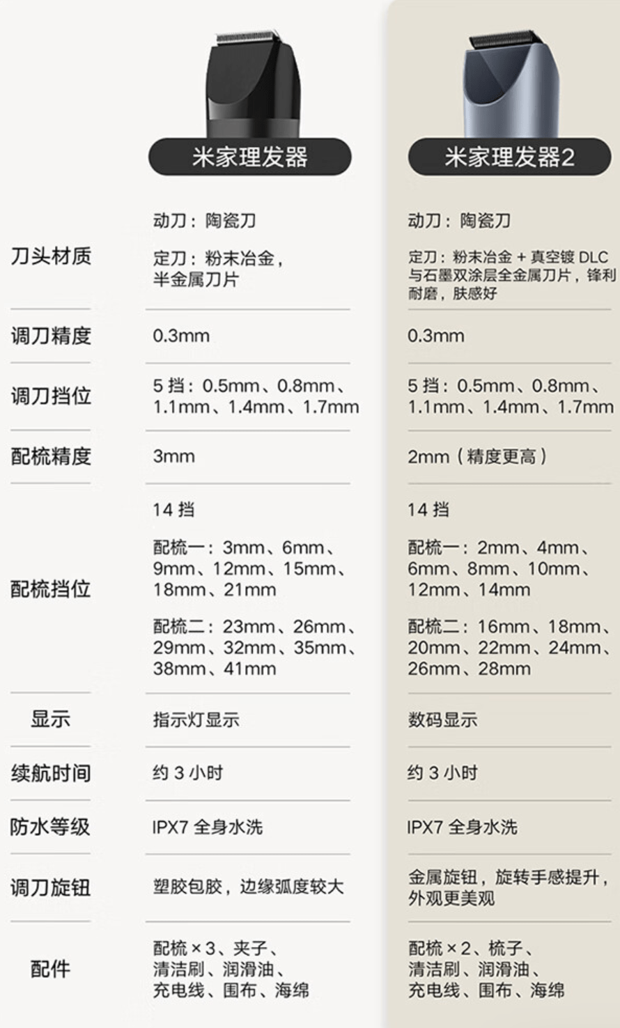 IT之家附米家理发器和米家理发器 2 参数对比如下: