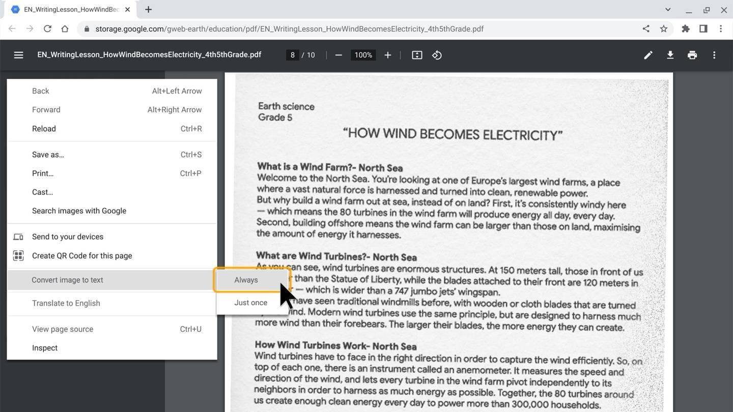 · 我的文件或所有位置 · 任何时间、今天、昨天、上周、上个月、去年 · 所有类型、音频、文档、图片和视频 - PDF 转换:该系统可以使用 OCR(光学字符识别)技术将 PDF 文件中的图片转换为文本,以提高屏幕阅读器的体验。此外,图片转文字的功能将在未来几个月内在 Chrome 浏览器中提供。