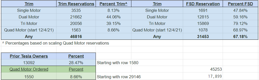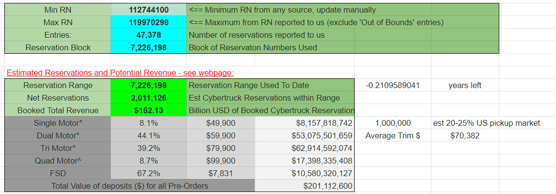 2019 年特斯拉 Cybertruck 推出后创建的 Google Sheets 预订跟踪器显示,特斯拉 Cybertruck 的预订量已超过 200 万。 IT之家从表格中获悉,在单电机、双电机、三电机和四电机车型中,双电机最受欢迎,三电机紧随其后,位居第二。单电机和四电机车型的预订量均明显减少,分别仅占 8.1% 和 8.7%。 同时,该表格还显示了购买 Cybertruck 时添加了全自动驾驶(FSD)的预订用户数据,占总预订量的 67% 以上。 值得注意的是,用户可以随时取消预订,预订 Cybertruck 仅需要 100 美元(IT之家备注:当前约 728 元人民币)的可退还押金。 特斯拉汽车设计主管弗朗兹・冯・霍尔兹豪森(Franz von Holzhausen)近日透露,部分特斯拉员工并不喜欢现有的 Cybertruck 设计方案,正秘密设计替代方案。 目前尚不清楚新替代版本是否会上线,以及采用什么设计。消息称不少设计工程师向马斯克建言,但始终没有马斯克的认可。马斯克力排众议,坚持推进现有项目。