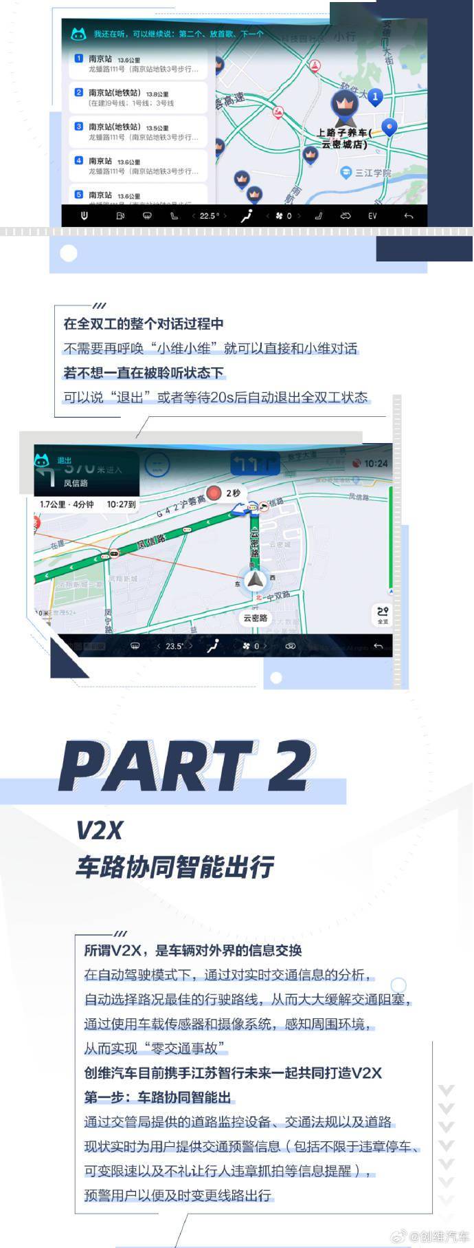 - V2X 车路协同智能出行:可通过对实时交通信息的分析,自动选择路况最佳的行驶路线,且能通过车载传感器和摄像系统感知周围环境。同时,还可通过交管局提供的道路监控设备、交通法规及道路现状实时为用户提供交通预警信息,以便用户及时变更线路。