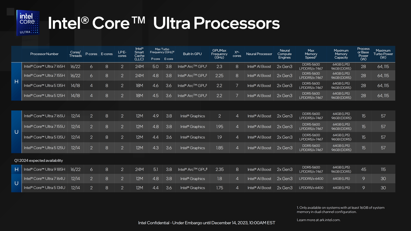 新款三合一 PC 游侠 X1 即将发布,搭载英特尔刚刚发布的酷睿 Ultra 处理器。 据介绍,这款三合一 PC 搭载双通道 LPDDR5X-7500 高频内存,可选 32GB 和 64GB 两种存储规格。此外,这款产品配备了 10.95 英寸 2.5K 120Hz 屏,并搭载哈曼品牌认证双扬声器。 据IT之家稍早前报道,英特尔酷睿 Ultra 移动处理器现已发布,首批型号包括 U 和 H 两个系列,基础功耗分别为 15W 和 28W。U 系列为 2+8+2 核心规格,最高 4Xe 核显。H 系列最高 6+8+2 核心规格,最高 8Xe 核显。明年第一季度,英特尔还将发布基础功耗 45W 的 Ultra 9 旗舰型号,6+8+2 核心规格,8Xe 核显。 详细参数如下: